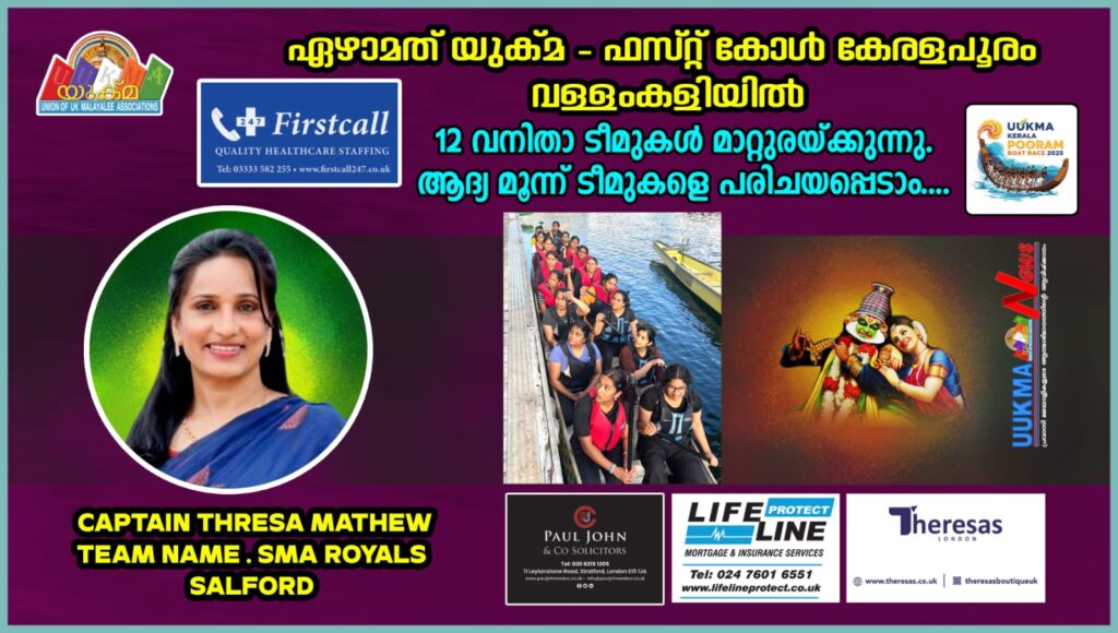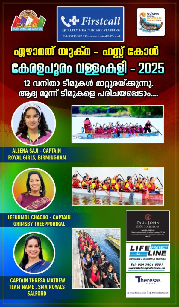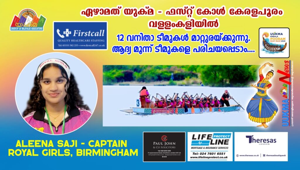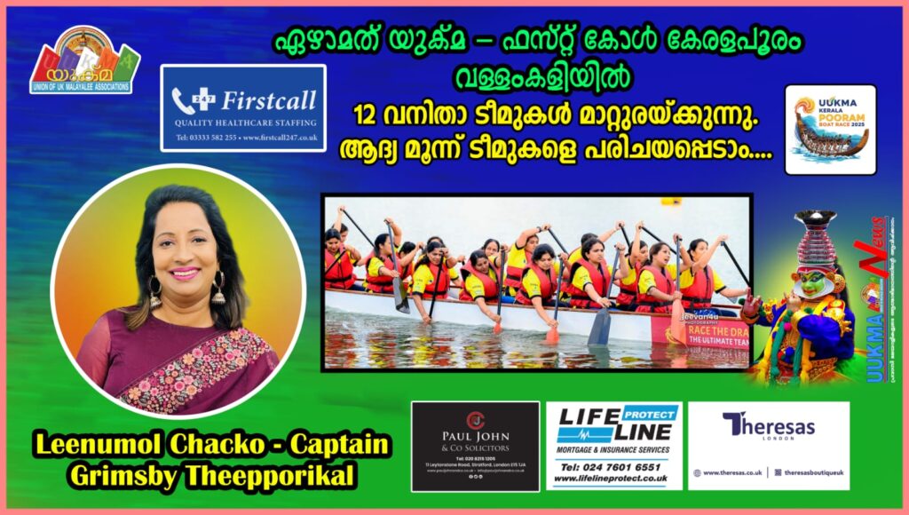 ഏഴാമത് യുക്മ – ഫസ്റ്റ് കോൾ കേരളപൂരം വള്ളംകളിയിൽ മാറ്റുരയ്ക്കുന്നത് 12 വനിതാ ടീമുകൾ….. ആദ്യ മൂന്ന് ടീമുകളെ പരിചയപ്പെടാം