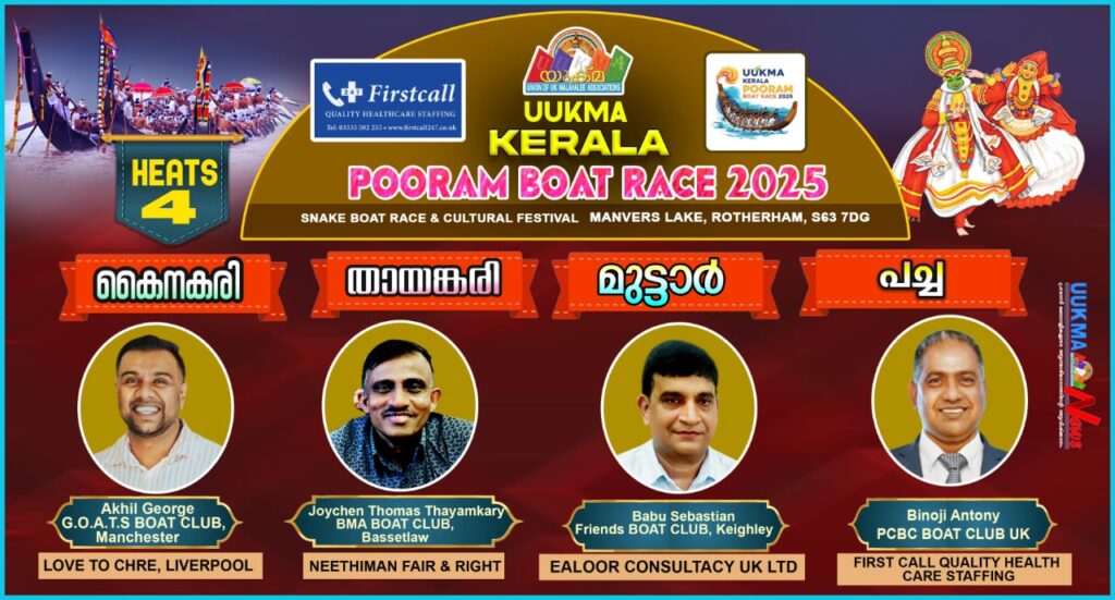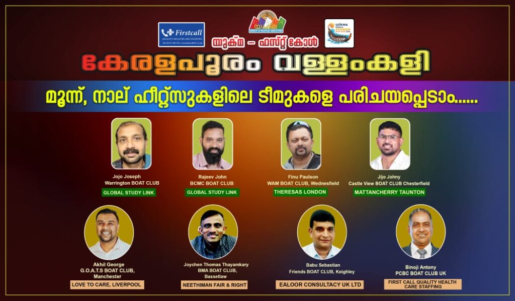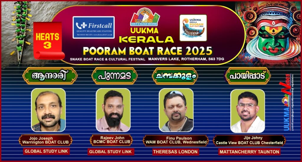 യുക്മ – ഫസ്റ്റ് കോൾ കേരളപൂരം വള്ളംകളി 2025 ൽ പങ്കെടുക്കുന്നത് 31 ജലരാജാക്കൻമാർ….. മൂന്ന്, നാല് ഹീറ്റ്സുകളിലെ ടീമുകളെ പരിചയപ്പെടാം.